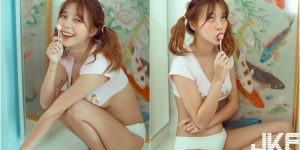 來自強國的辣模兜豆靓Youlina,拍攝的寫真的是這種火辣性感路線,就算穿得很清新,也可以完美的爆乳露腿,這套居家的裝扮就沒在客氣的呀!