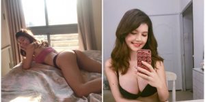 最近因為疫情關係,「장수지」也有PO出戴著口罩的辣照,圖中,她穿著灰色超短洋裝,下身視角很誘人,豐滿的胸型曲線也很吸睛,車頭燈特別明顯,走在路上即使戴著口罩,也讓人好想認識,曲線真是極品~~