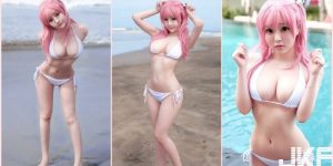 緒方咲一張巨乳夾奶的絕招,兩顆白嫩大奶球夾住玻璃,那塊薄薄的玻璃不知道有沒有辦法承受這種壓力;上半身有巨乳,下半身的翹臀也不容忽視,只是緒方咲的渾圓美臀吃布吃得相當嚴重,穿起比基尼都全部陷進縫裡,還得拉出來才行,這畫面真的太猛啦!