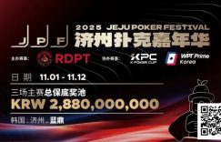 【EV扑克(www.evp86.com)报道】扑克玩家们,请准备迎接年末最火热的赛事盛宴!亚洲备受瞩目的2025 济州扑克嘉年华(Jeju Poker Festival, JPF)将于11月1日至12日在韩国济州岛盛大举行。距离开赛仅剩倒数四周,一场融合竞技与度假氛围的超级扑克嘉年华,即将在秋季的济州岛激情上演!