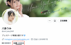 看到凉森れむ(凉森玲梦)的X(twitter)突破百万大关,相信很多朋友也注意到了,与她一样在蚊香社打拼,人气也非常旺然后也来参加国际展的「八挂うみ(八挂海)」不久前X(twitter)也突破70万追踪,厉害非常非常厉害〜