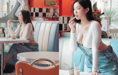 美式餐廳什麼時候出了兩杯重乳?作在窗邊的這位就是,穿著白色的短版長袖上衣,搭上吊帶牛仔褲,看似休閒輕便卻罪惡到不行,不只露出纖細無比的水蛇腰間,連領口也直接開到最下面,隨之乍現的是一雙渾圓又飽滿的巨乳,不論是遠視還是近看都壯觀無比! (圖片來源:來到美式餐廳點了杯飲料和一份薯條就愜意的吃起來,雙乳的震撼力搭上精美清秀的臉蛋,讓全店男士都想上前搭訕,就連薯條一根一根放進嘴裡的畫面也如此撩人,粉絲看到一系列照片也餓了起來:「要不要(。)(。)放桌子上,舒適一點」、「妳怎麼吃薯條隨身帶核彈?」、「不想吃薯條想吃妳」! (圖片來源:有張清甜又迷人的高顏值,只要淺淺的笑顏就能讓人神魂顛倒,167公分/58公斤的勻稱美體凹凸姣好,更不時頂起那雙招牌E Cup,完美的奶型光是看那北半球就知道,擔任模特兒的她更不定時在上架新作品,想看更多精彩又大尺度的畫面絕對不能錯過!