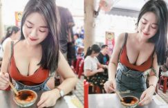 【大发娱乐】好深的碗粿!「白嫩巨乳妹」台南夜市吃美食,彎腰「溢奶畫面」讓網友大喊:太深啦!