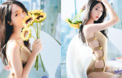 充滿陽光的季節裡,最喜歡看到繽紛的百花盛開!眼前這位妹子「九九」也享受在花香的其中,穿著卡其色的連裝泳衣,看似素面普通,卻在側身時露出整條性感肉色,還有凹凸姣好的S曲線,當她拿起向日葵薰香著自己,搭上清澈的眼神就讓人馬上陶醉,任誰都想跟她一起鴛鴦浴! (圖片來源: