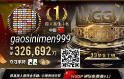 国人又拿金手链了!北京时间9月5日,恭喜中国选手”周澎“勇夺WSOP金手链#12:迷你主赛事冠军,斩获326,692刀奖励!