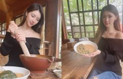 【大发娱乐】「氣質正妹」客家擂茶體驗,一字領秀「白嫩香肩」,衣領下暗藏兩球雪白麻糬!