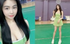 【大发娱乐】「雪乳正妹」室內羽球場出沒!短裙露白嫩美腿,胸前爆乳份量也好吸睛!