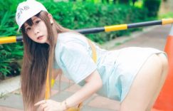 什麼有一點?這根本是超級犯規的吧!眼前這位惹火人的妹子【小林兒】,一身水藍色的寬大上衣,白色血小板的鴨舌帽下是一張清甜又無辜的神情,趴在三角錐旁似乎在尋找遺失的物品,一個move卻撩出了雪白稚嫩的小屁屁,翹彈的蜜桃就這樣展現,她也很有自知的說:「有點母湯的血小板」,話說妹仔妳的褲子勒?