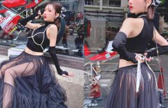 「人比車香」就是這畫面的詮釋,紅色重機永遠搶不贏前面這位性感尤物的存在感!時尚教主「葉妮妮Minnie」大招又開,在櫥窗玻璃前擺弄著窈窕的姿態,特別的全黑裝扮耐看又率性,無袖上衣還勾勒出美乳的兩顆渾圓形狀,下半身更是不得了,半透明的紗裙乍現若隱若現的白皙長腿,就連三角小褲褲也露餡! (圖片來源: ▶ ▶