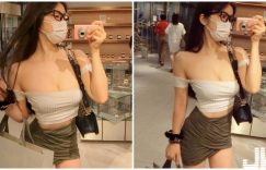 【大发娱乐】百貨商場驚見「爆乳口罩妹」,超低胸視角火辣自拍,巨大H奶要掉出了!