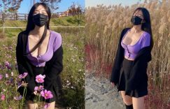 【大发娱乐】穿百褶裙賞花的「超爆乳正妹」,「不怕冷的低胸畫面」好惹火!