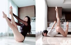 【大发娱乐】大奶瑜珈騷妹「提肛貼乳韻律服」示範拉筋 高難度「翹屁扭曲身體」讓人看得都硬了