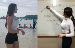 【大发娱乐】想學英文!「爆乳英文老師」把衣服撐薄 裡面小內內都透出來了!