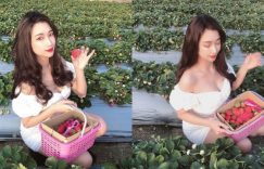 【大发娱乐】甜美正妹娜娜米Nana小洋裝秀「香肩美乳」採草莓,超養眼畫面讓人也想來兩口!