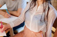 夏天的下午最容易下起午后雷阵雨,家庭教师伊藤かえで(伊藤枫)今天忘记带伞,在前往家教学生家竟被豪雨袭击,一进到学生家全身都湿了,身上的衬衫变成半透明,露出了裡面的深色内衣。